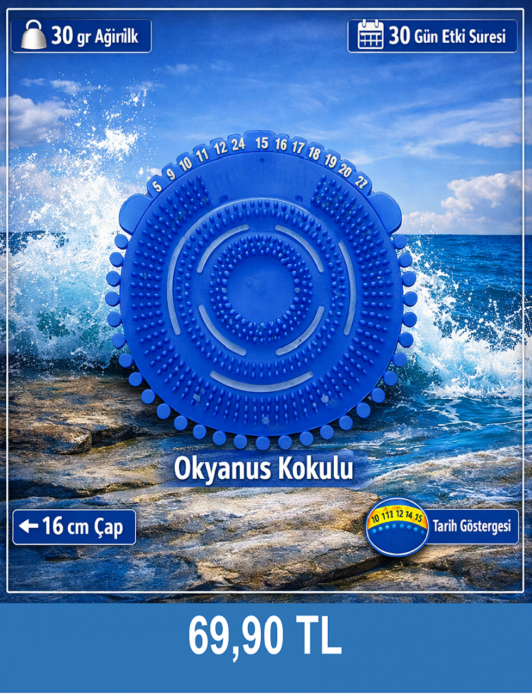 Okyanus esanslı koku giderici süzgeç, ferahlatıcı etkisiyle yoğun alanlarda kötü kokuları etkili şekilde nötralize eder. Yoğun ve güçlü kokusuyla kullanıcıya temizlik hissi verir. Kötü kokuları etkili şekilde bastırırken ortamda hoş bir atmosfer oluşmasını sağlar. Sıvı ve ısı temasıyla birlikte kokunun yayılımı artar.